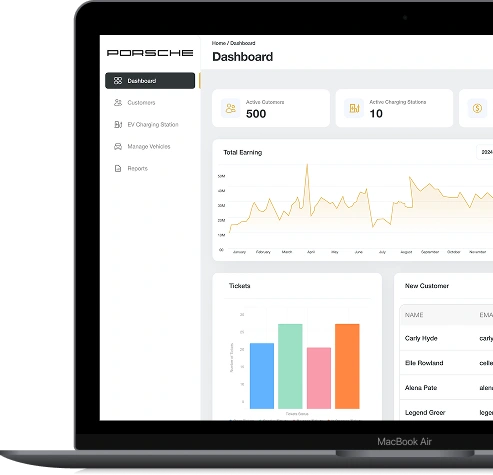 Custom EV charging management software for networks, operators, and startups-covering station monitoring, payments, and user apps.