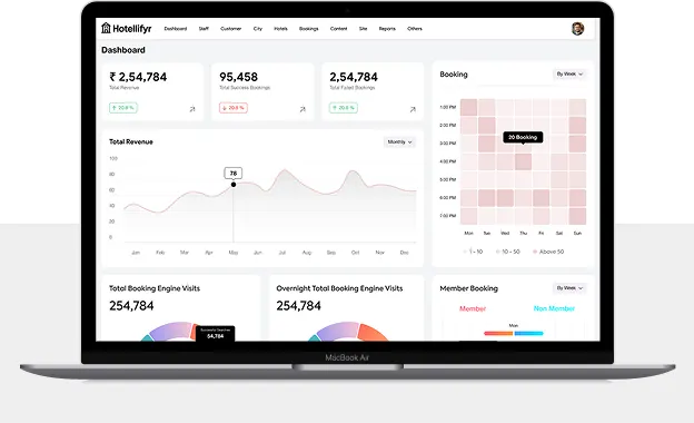 Our solutions are built as a complete hotel management system tailored to your operations. It typically includes a PMS, hotel booking engine, channel manager integration, housekeeping automation, POS system, CRM, guest mobile app, digital key access, revenue management tools, analytics dashboards, and multi-property management - all customized to your workflow.
