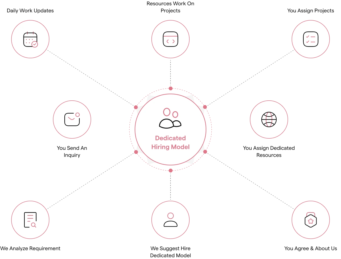 The Dedicated Team engagement model is ideal for businesses looking to scale development quickly or extend their in-house capabilities with skilled professionals. This long-term engagement approach provides complete control, transparency, and seamless collaboration-without the overhead of recruitment, infrastructure, or team management.