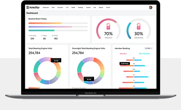 Access real-time metrics across bookings, guests, staff, and revenue.